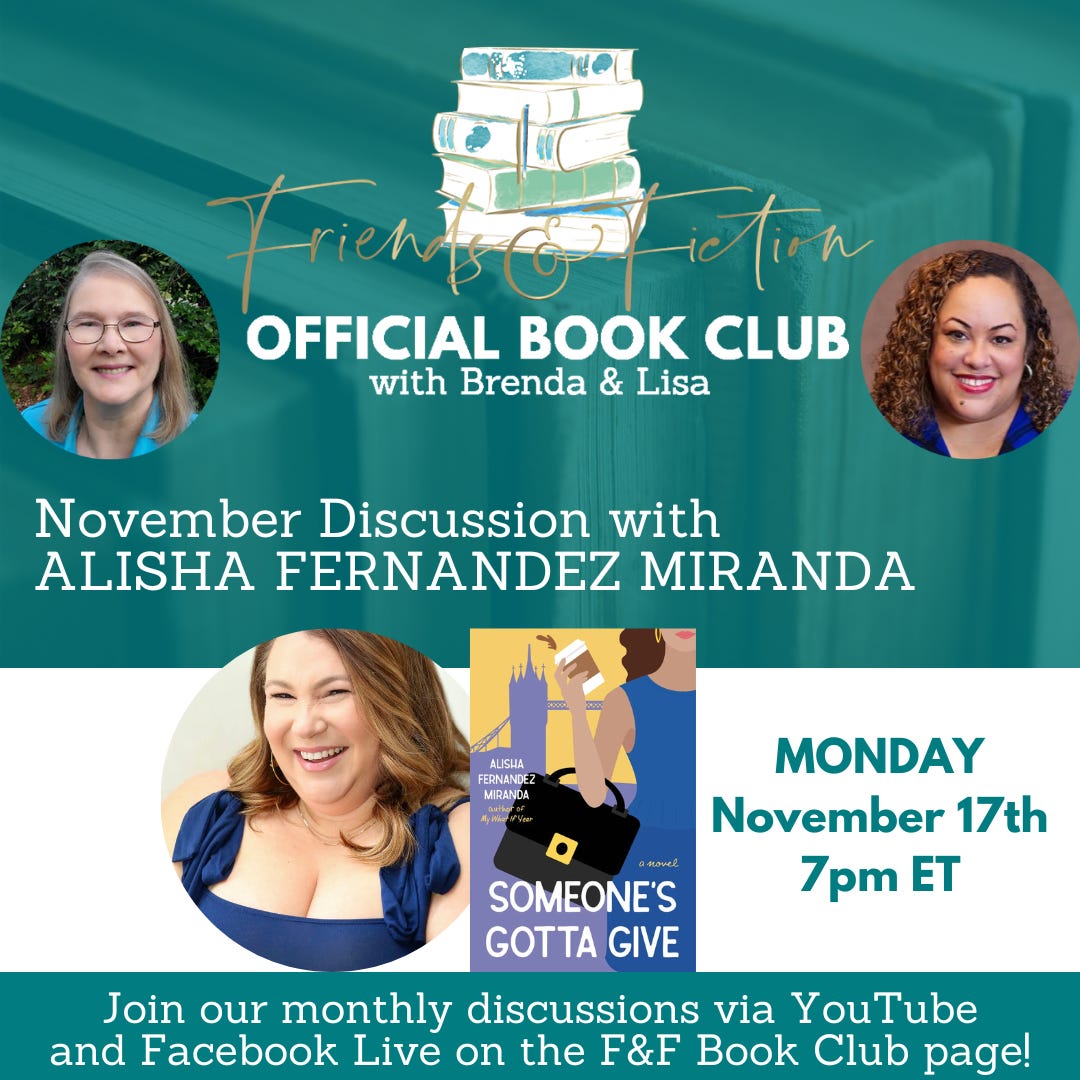 Join Brenda Gardner & Lisa Harrison for monthly book club picks and live online author chats on the Facebook page for the F&F Official Book Club with Brenda & Lisa, where they’ve amassed nearly 40,000 of their own members. You can also follow the Book Club on Instagram and subscribe to their YouTube channel where you can catch past discussions, including their most recent chat with Morgan Ryan about her novel, A Resistance of Witches. Mark your calendars for November 17th for their next author guest, Alisha Fernandez Miranda, when they’ll discuss her new novel, Someone’s Gotta Give. The Book Club is also hosting the 2025 F&F Reading Challenge. Join them for a different category prompt each month to read outside your comfort zone. The October prompt is to read a book with “magic” in the title and for November it’s to read a book written by a celebrity.